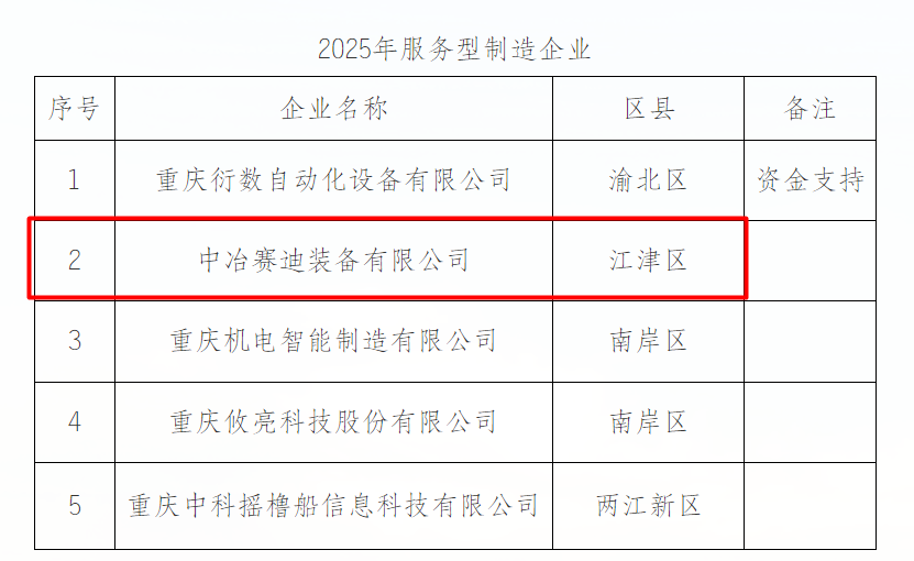 公司入選重慶市2025年服務型制造企業