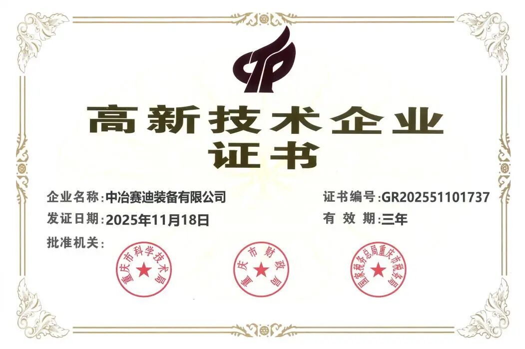 中冶賽迪裝備順利通過2025年度國家高新技術企業復審認定